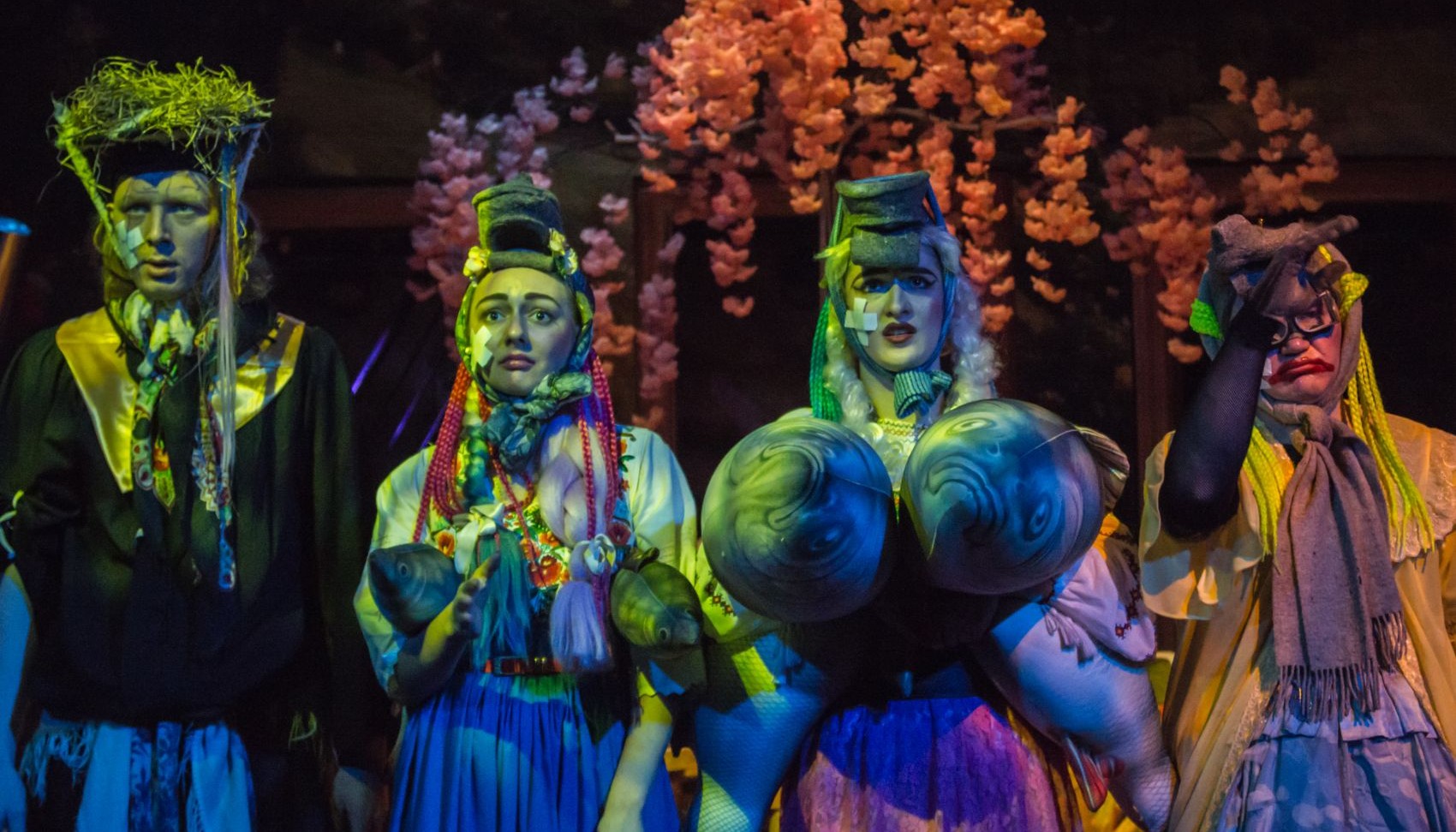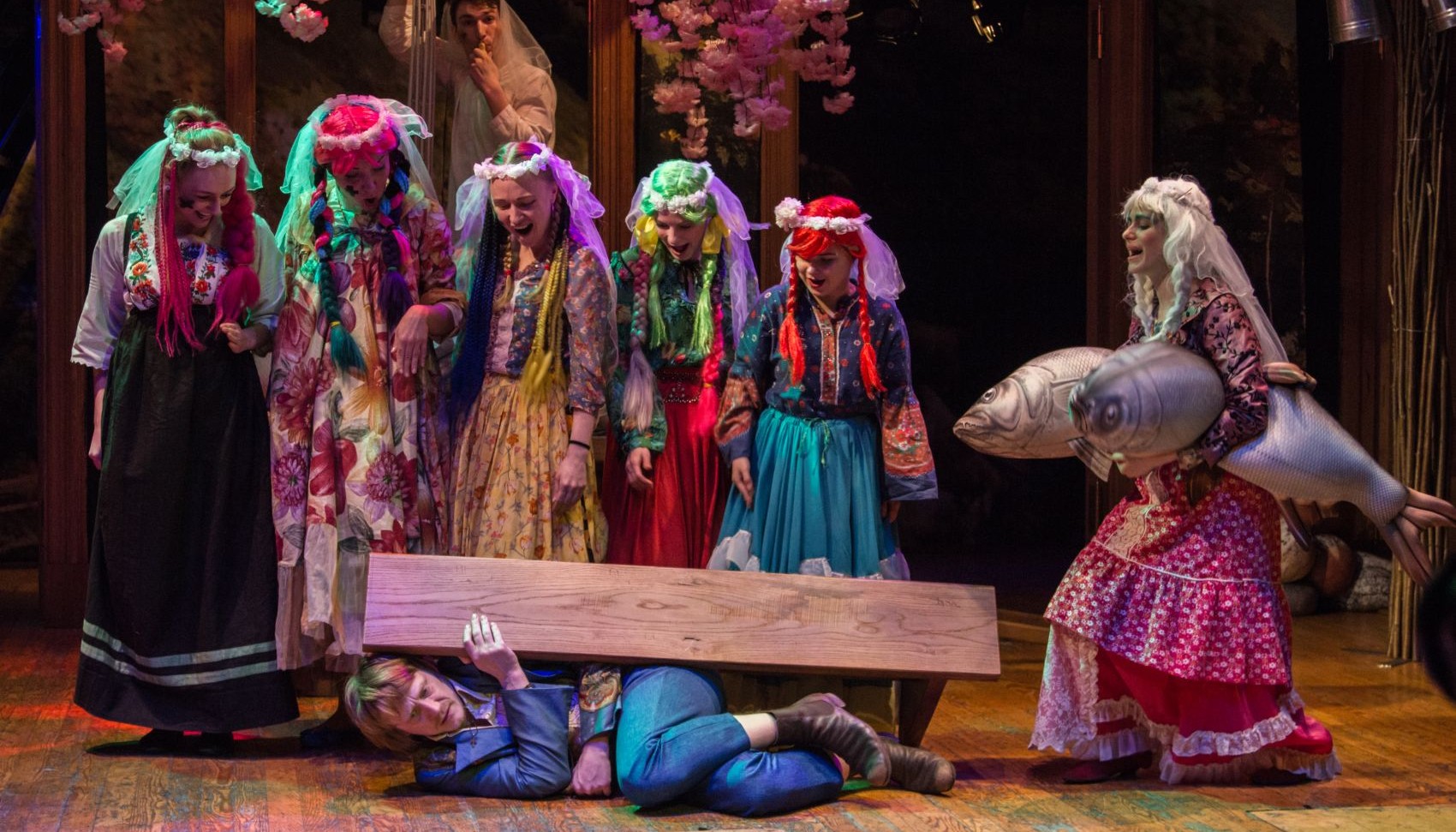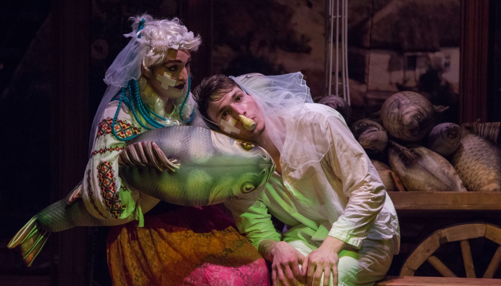 Знакомясь с невестой, Иван Фёдорович испытывает панический, жуткий страх. Извечный мотив Гоголя, так искусно выписанный в «Женитьбе»: прыжок Подколесина в окно, бегом от свадьбы, а в новом спектакле нашего театра Иван Федорович прыгает в могилу, боясь любви и жизни.