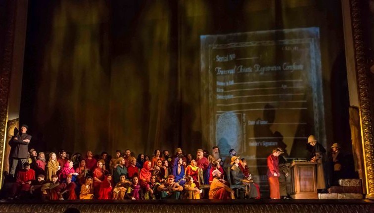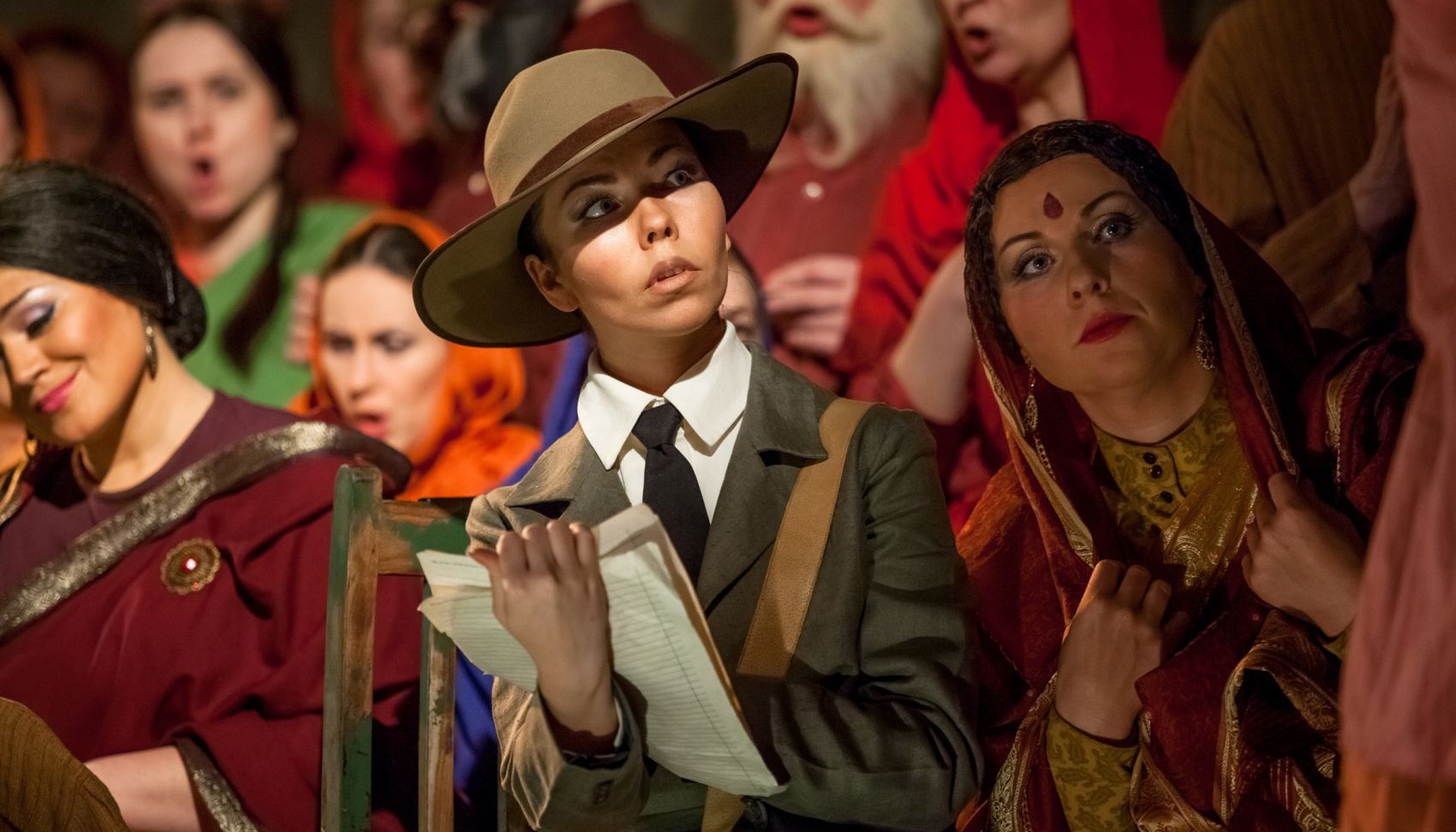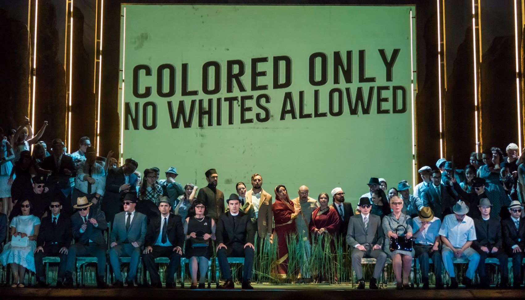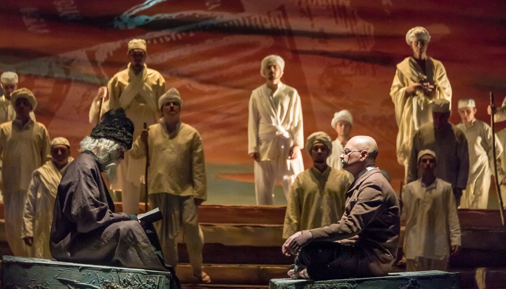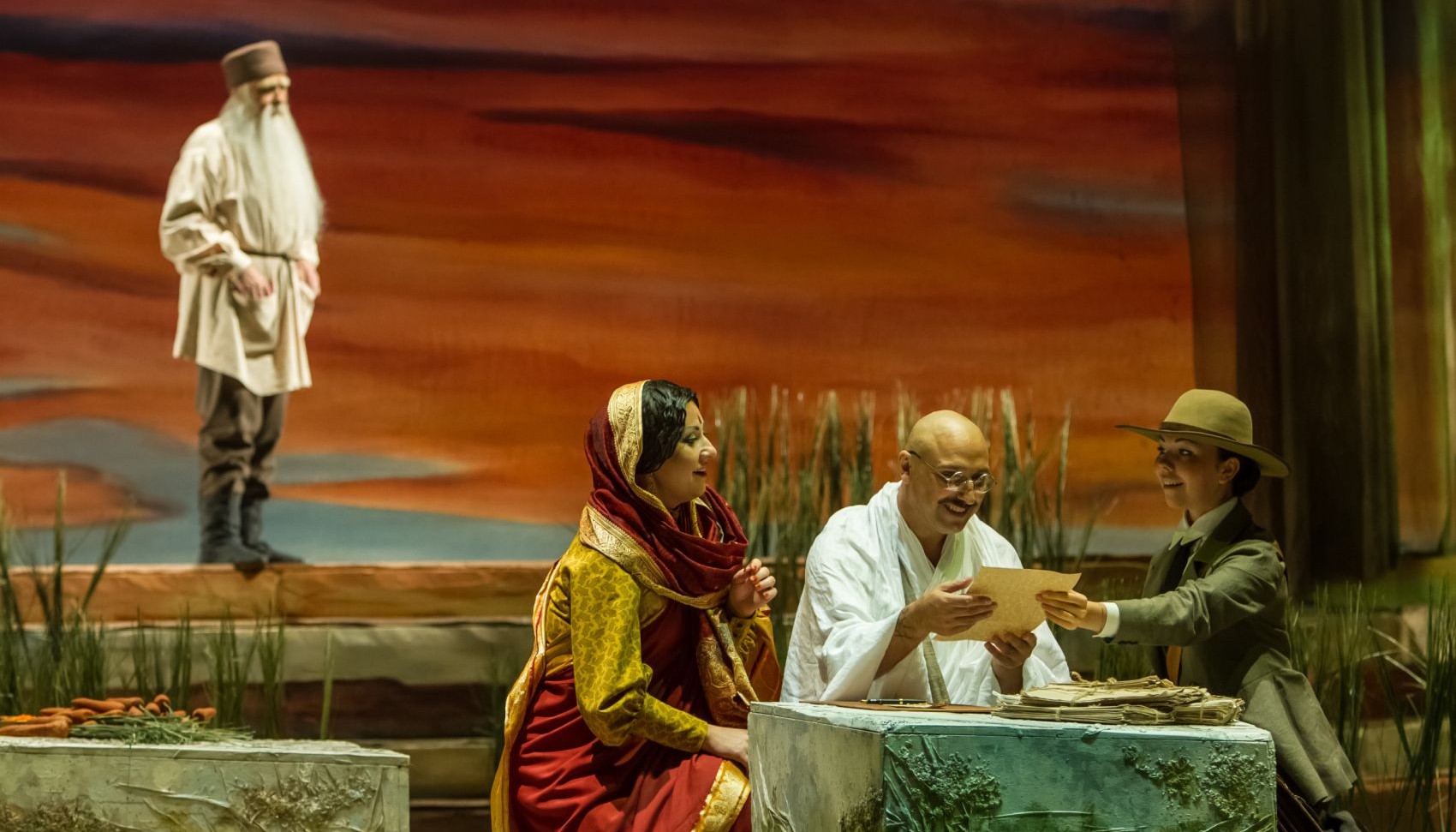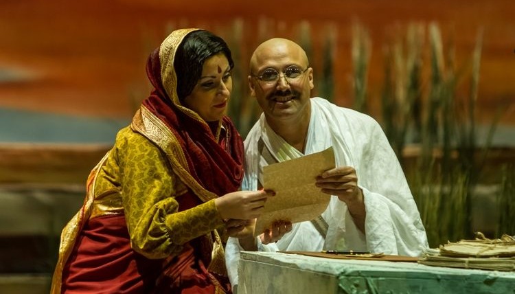 Режиссер Тадеуш Штрассбергер поместил действие в условное, почти сказочное пространство и не стал разделять театр на сцену и зал, окружив зрителей шествующим по партеру хором. Его «Сатьяграха» — опера-медитация, где зрителю предлагается забыть бытовые неурядицы и привычные представления об оперной музыке и следовать за бесконечно повторяющимися музыкальными фигурами. В череде этих повторений самый малый ритмический или гармонический сдвиг становятся большим событием, и спустя три часа возникает ощущение, что окружающий мир и сам зритель стали немного другими.