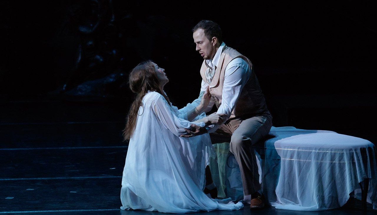 В екатеринбургском спектакле режиссер Алексей Степанюк развернул действие в условных бальных залах и гостиных, не злоупотребляя страстью к бытовым деталями, но подчеркивая вневременную эмоциональную природу музыки — в расчете на то, что происходящее не будет выглядеть лишь частным происшествием прошлого, но станет по-человечески задевать тех, кто находится в зале.