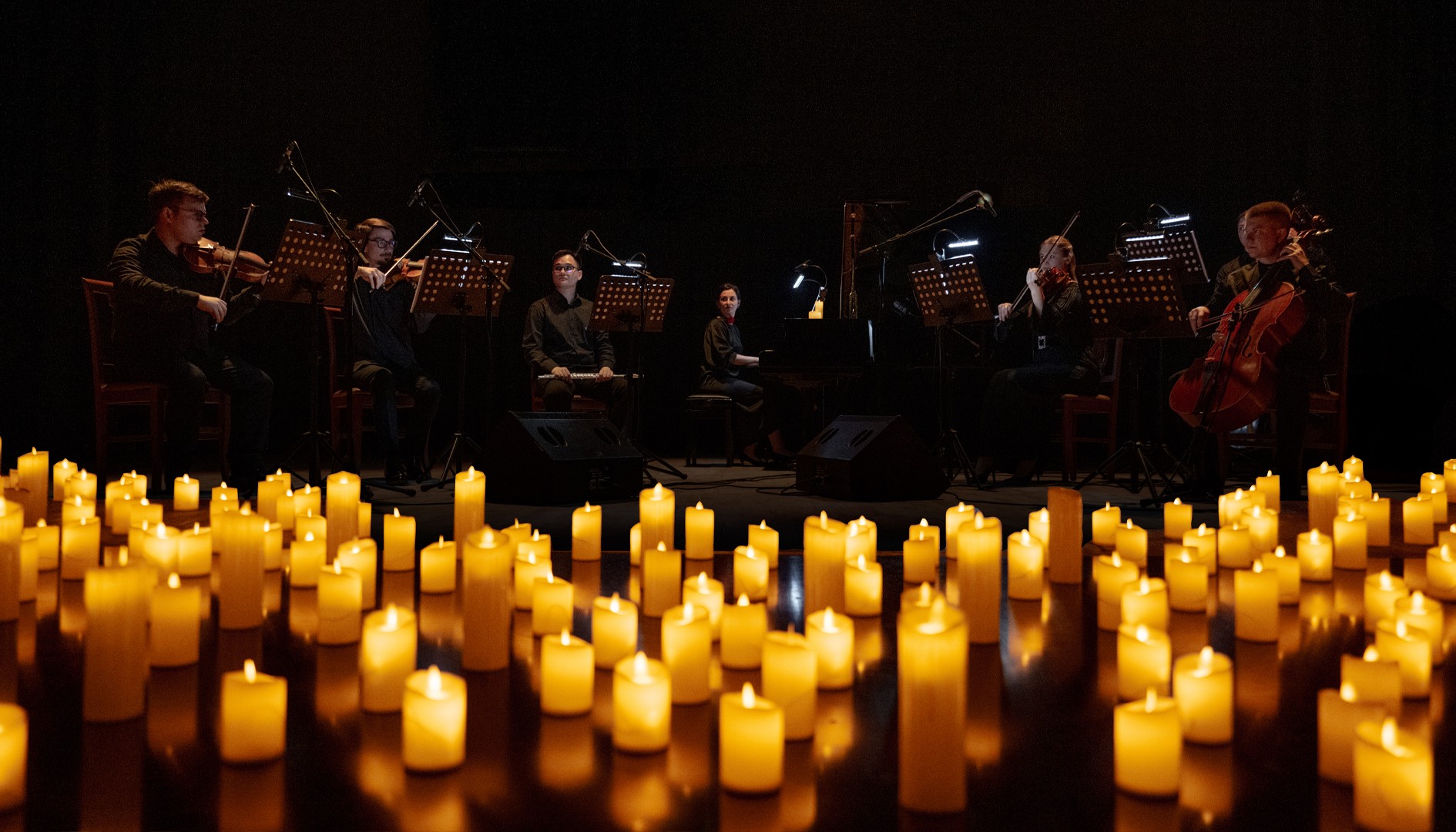 В сиянии тысячи свечей музыка раскрывается по-новому, наполняя пространство магией и вдохновением.