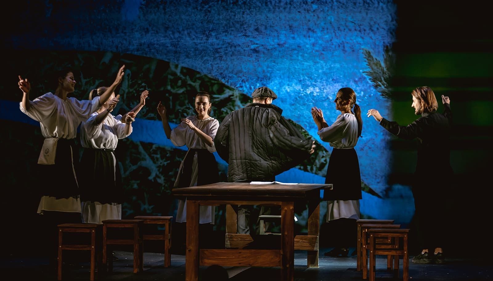 Глубокий спектакль-притча в жанре народной мистерии о простом человеке, о народе, о вере и о Боге, о русской душе.