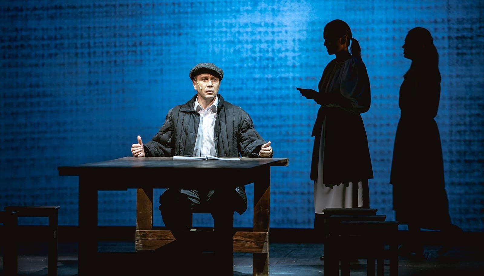 В спектакле «Русский крест» актер предстает в образе рассказчика и поэта, гражданина и патриота, человека, искренне любящего свой народ.