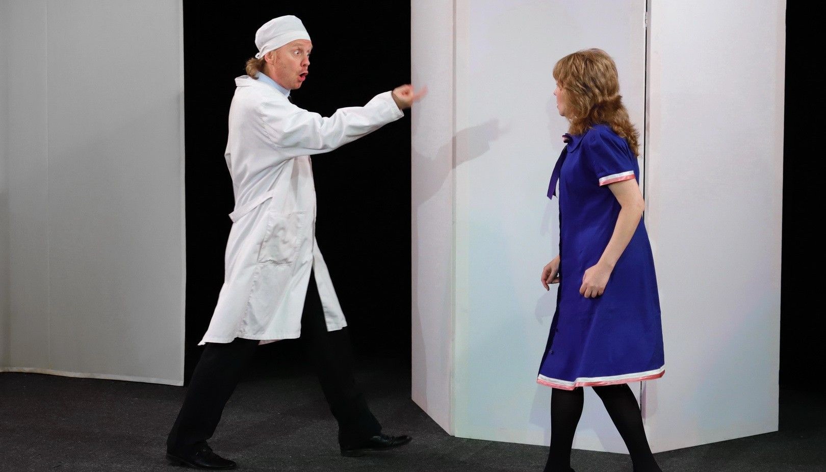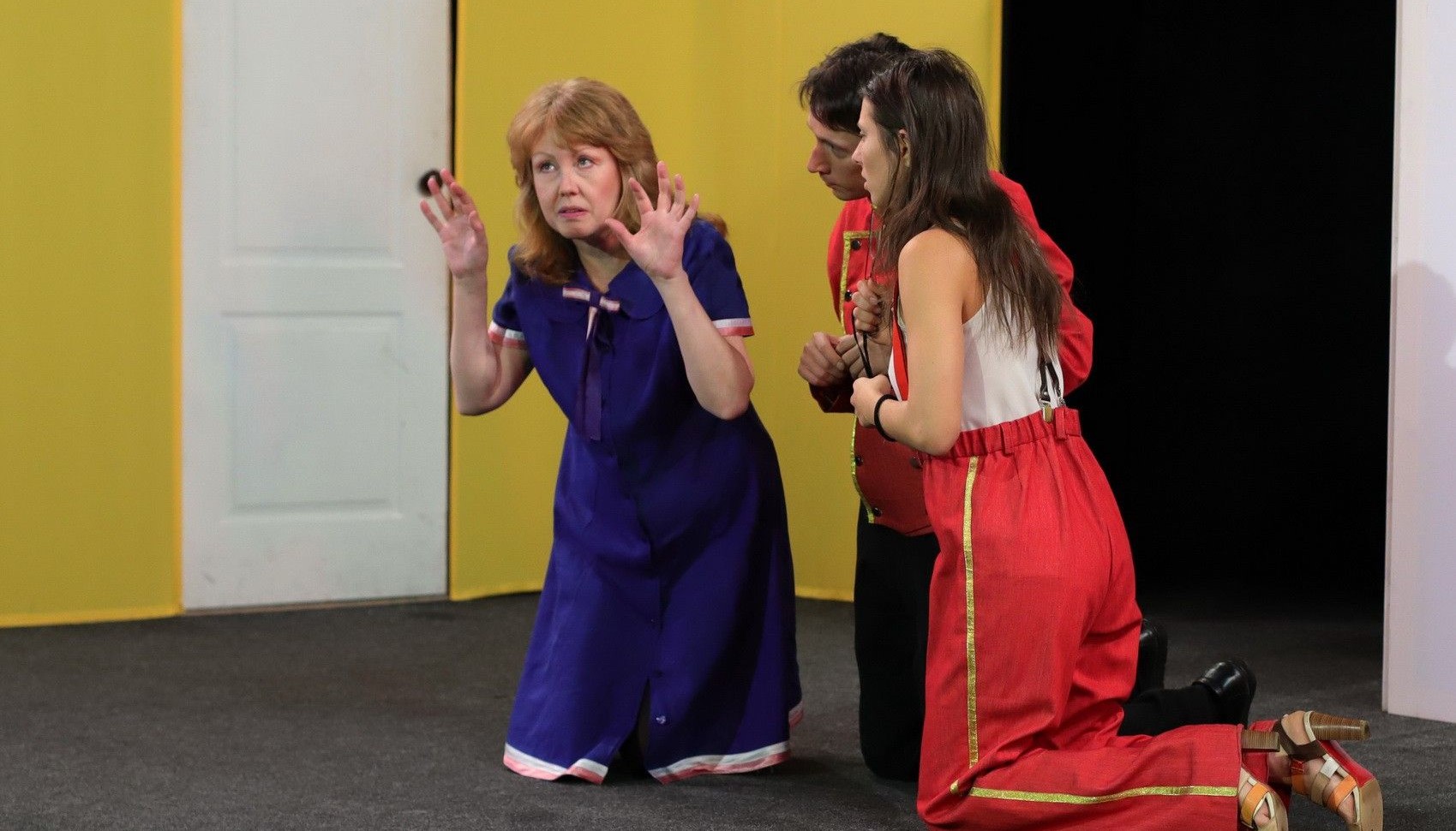 Спектакль «Я ваша мать» в постановке нашего театра – яркая, динамичная комедия положений, как ей и положено быть по замыслу автора. Место действия – психиатрическая клиника, где не лечат безумие, а лишь высвобождают его. Молодая девушка приходит сюда наниматься секретаршей. Действие развивается по цепочке смешных нелепостей, ошибок, переодеваний, все совершается в один безумный день. И пусть зрителя не смущает место действия, ибо режиссёром это сценическое пространство решено как яркий уютный мир, где комфортно и артистам, и зрителям.